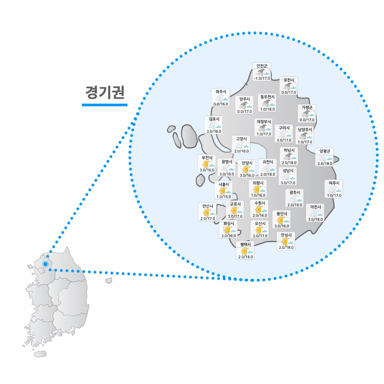 오늘날씨 오늘 아침까지 강원영동 눈, 아침은 쌀쌀 낮에는 포근, 구름많고 일교차 큰 날씨, 3월 7일 오늘날씨 짙은 안개에 연무까지, 낮에도 희뿌연 하늘, 대체로 구름많고 일교차 큰 날씨, 3월 14일 5시.